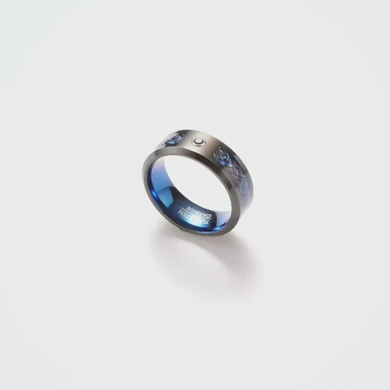 Expertly crafted with a unique black dragon pattern inlaid on a stunning blue carbon fiber, this 8mm Tungsten ring is a bold addition to any persons jewelry collection. Its durable and scratch-resistant material ensures long-lasting use, making it the perfect combination of style and functionality.